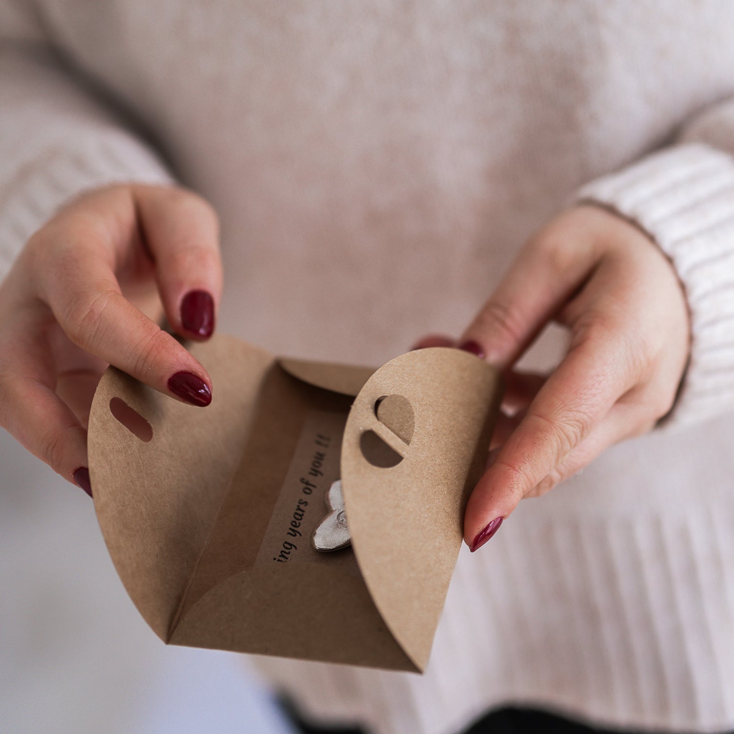 On the reverse is a gift message area so you can personalise your gift. It comes packaged inside a matching kraft envelope with a heart clasp too.