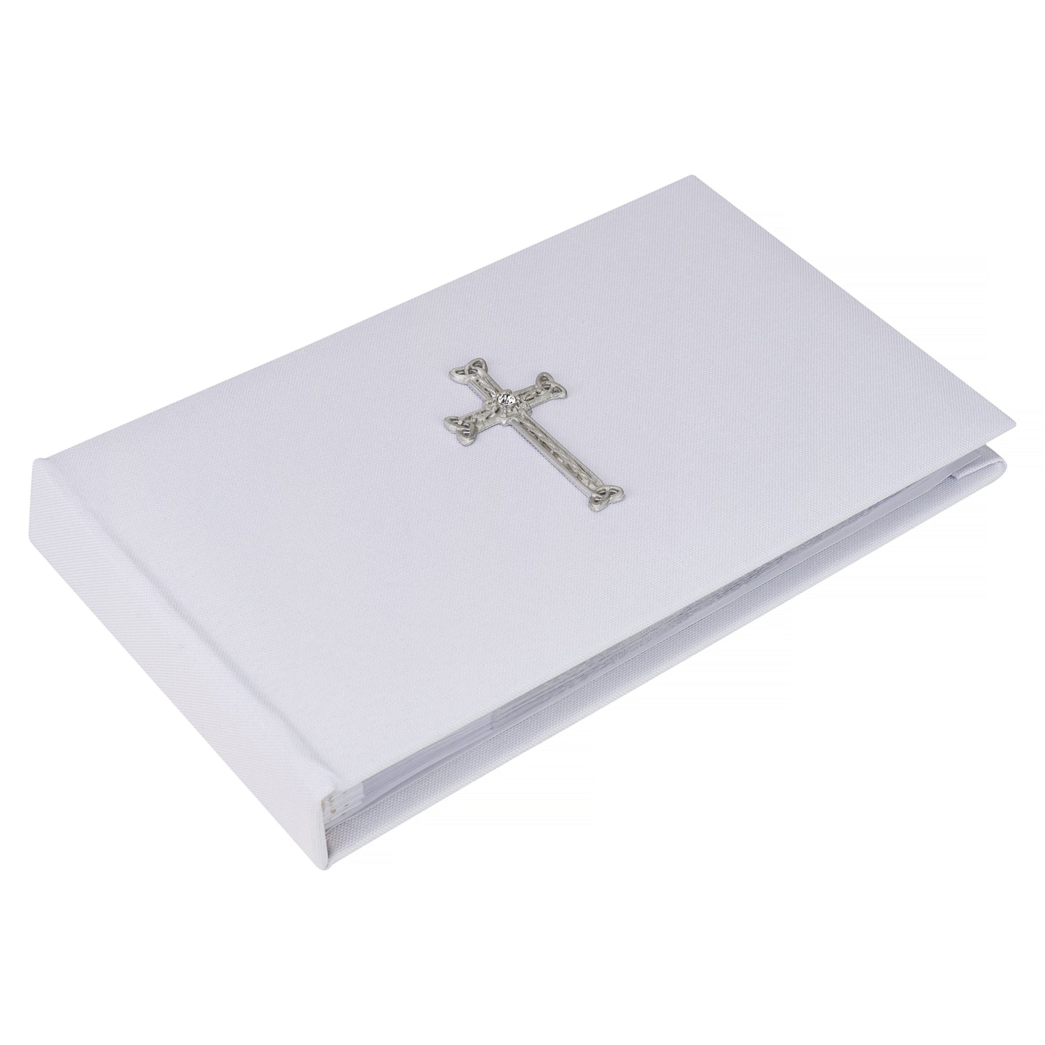 The cover features a smart pewter cross with a diamante stone in the centre.