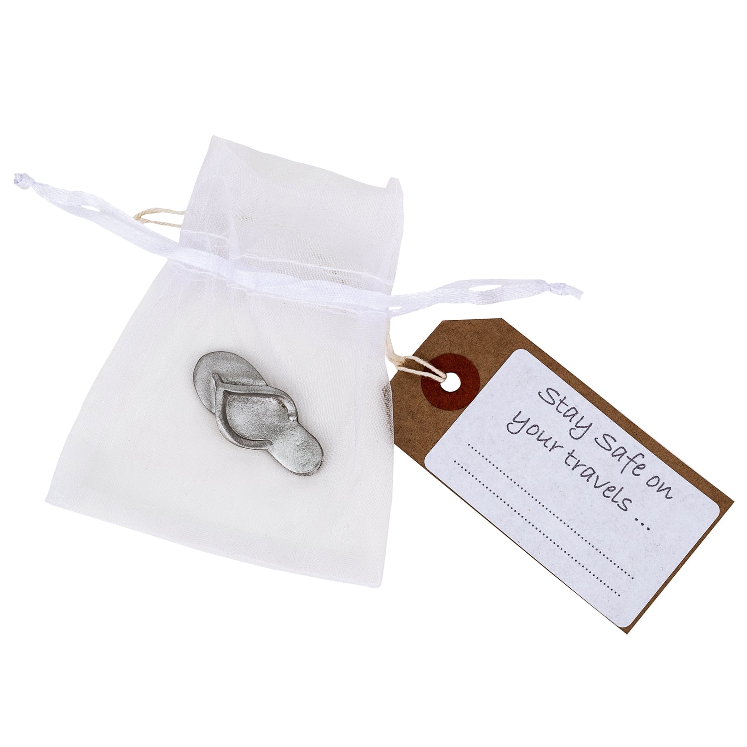 This fab flip flop says 'Travel Safely' on the bottom - perfect for reminding those away from home that you're thinking of them.
