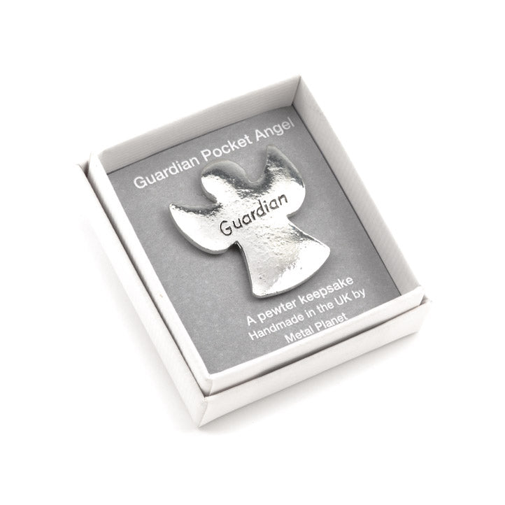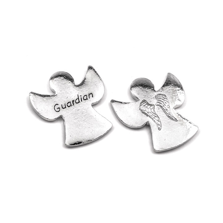 Secured to a smart dove grey card with the printed words 'Guardian Pocket Angel' which can be easily detached and kept safe in a pocket, purse, wallet etc.