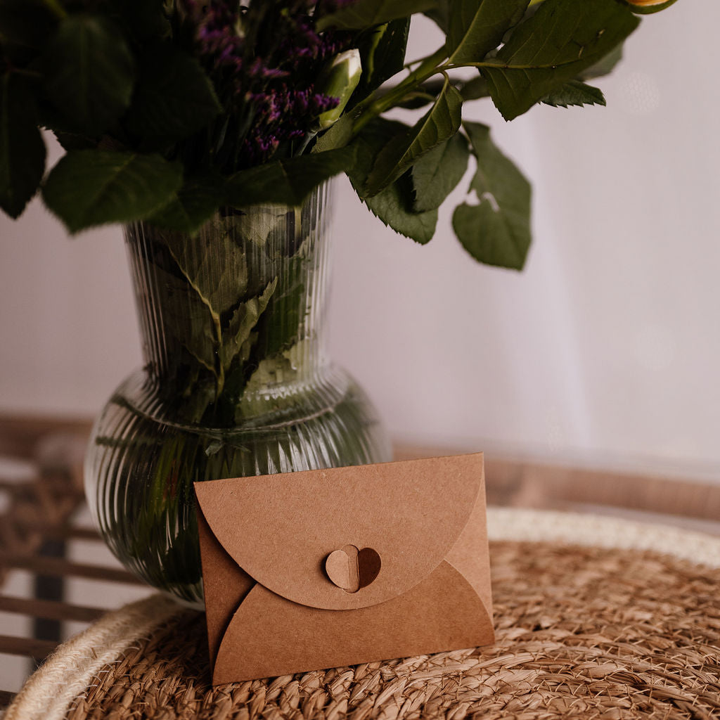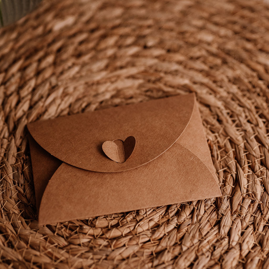 Each pocket keepsake is packaged on a printed kraft card and comes cutely packaged in a little kraft envelope with a heart clasp so a gift and a card in one! These lovely little sentiments are suitable for all age groups and male or female.