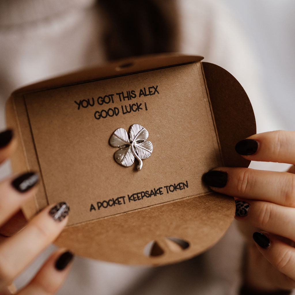 Personalised Good luck pocket token 'You got this - Lucky shamrock token'