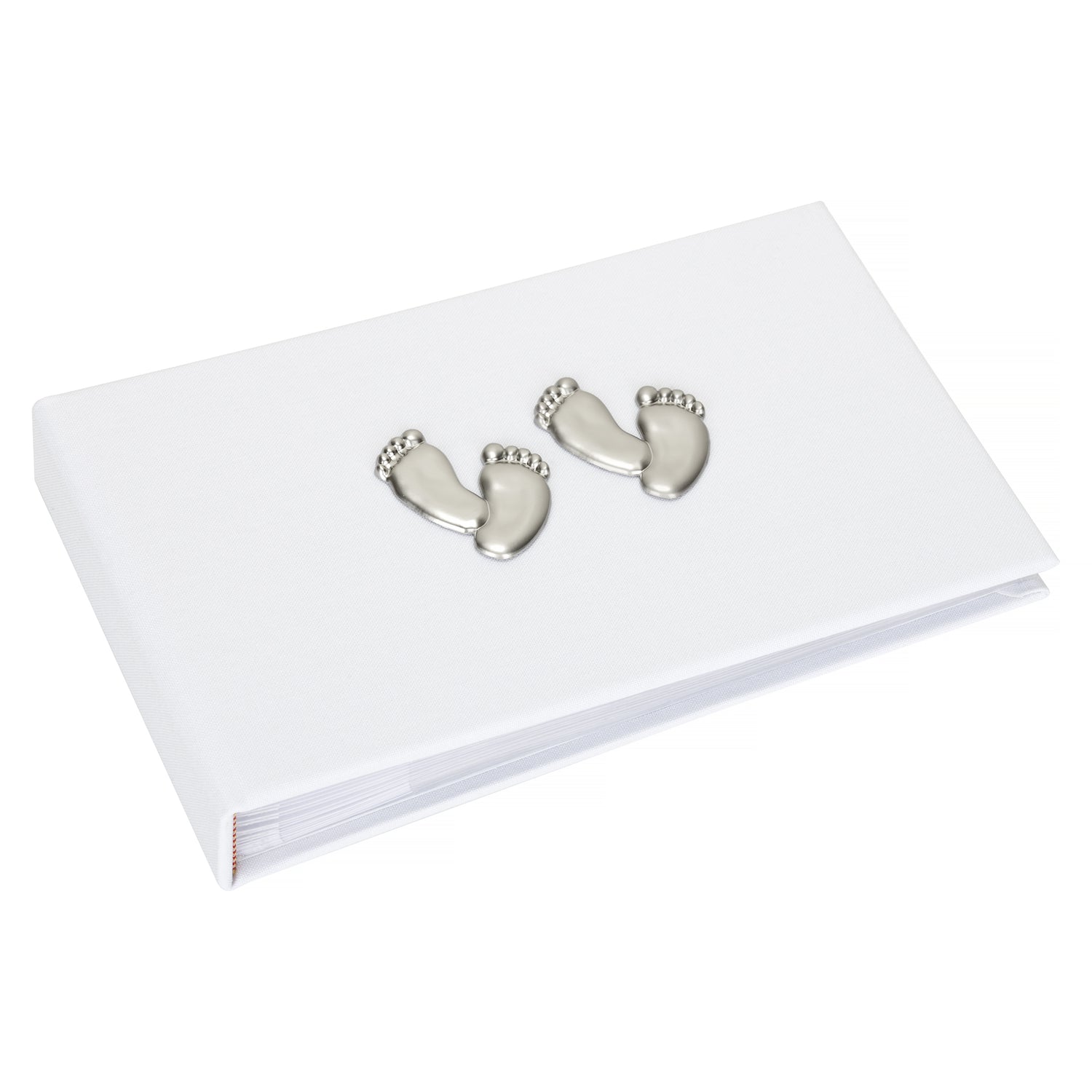 A gorgeous sweet design of double footprints (double trouble!) set onto the choice of 3 photo albums - baby blue, baby pink neutral white.